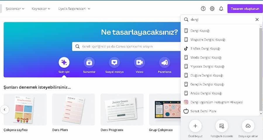 Dergi yapma programı Canva ile PDF dergi yapma işlemleri de gerçekleştirebilirsiniz.